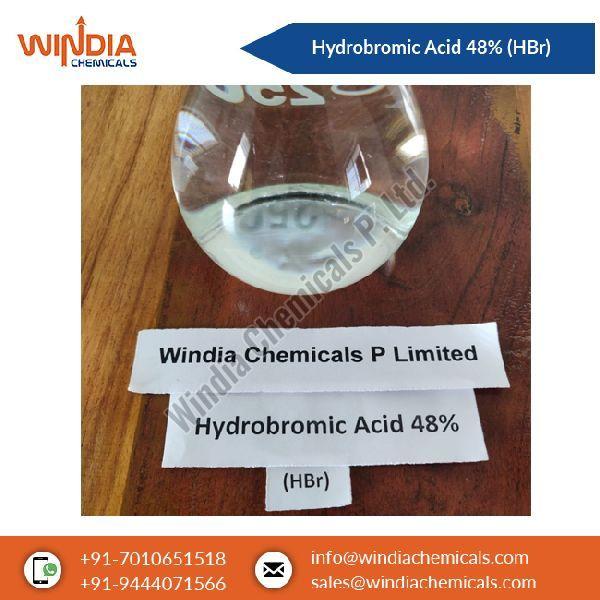 hydrobromic acid is a solution of hydrogen bromide in water. It is normally a clear, colorless liquid, sometimes colored yellowish or brown by decomposition (oxidation by air) and release of elemental bromine, with a strong odor.